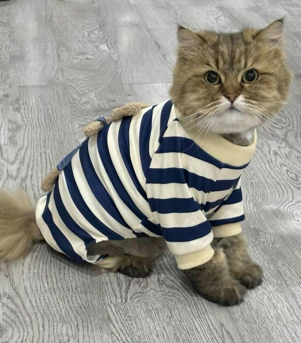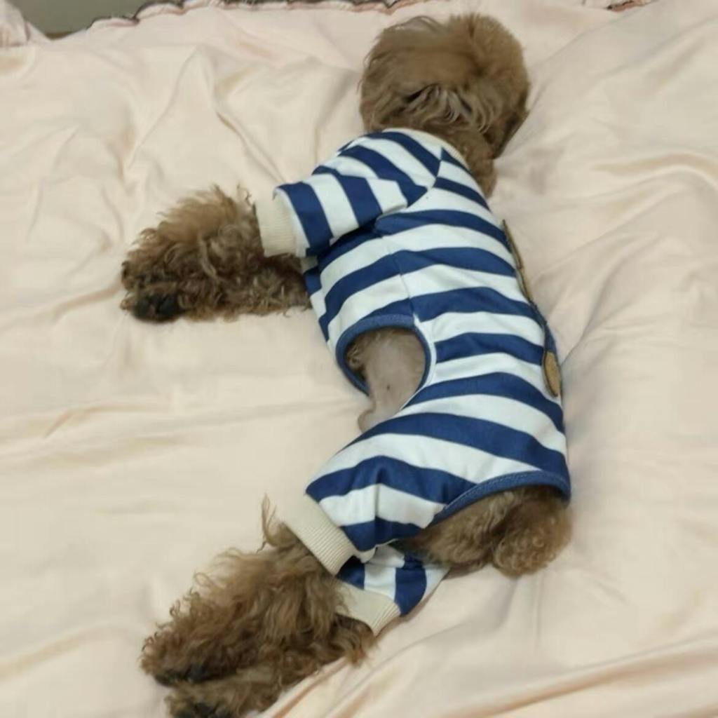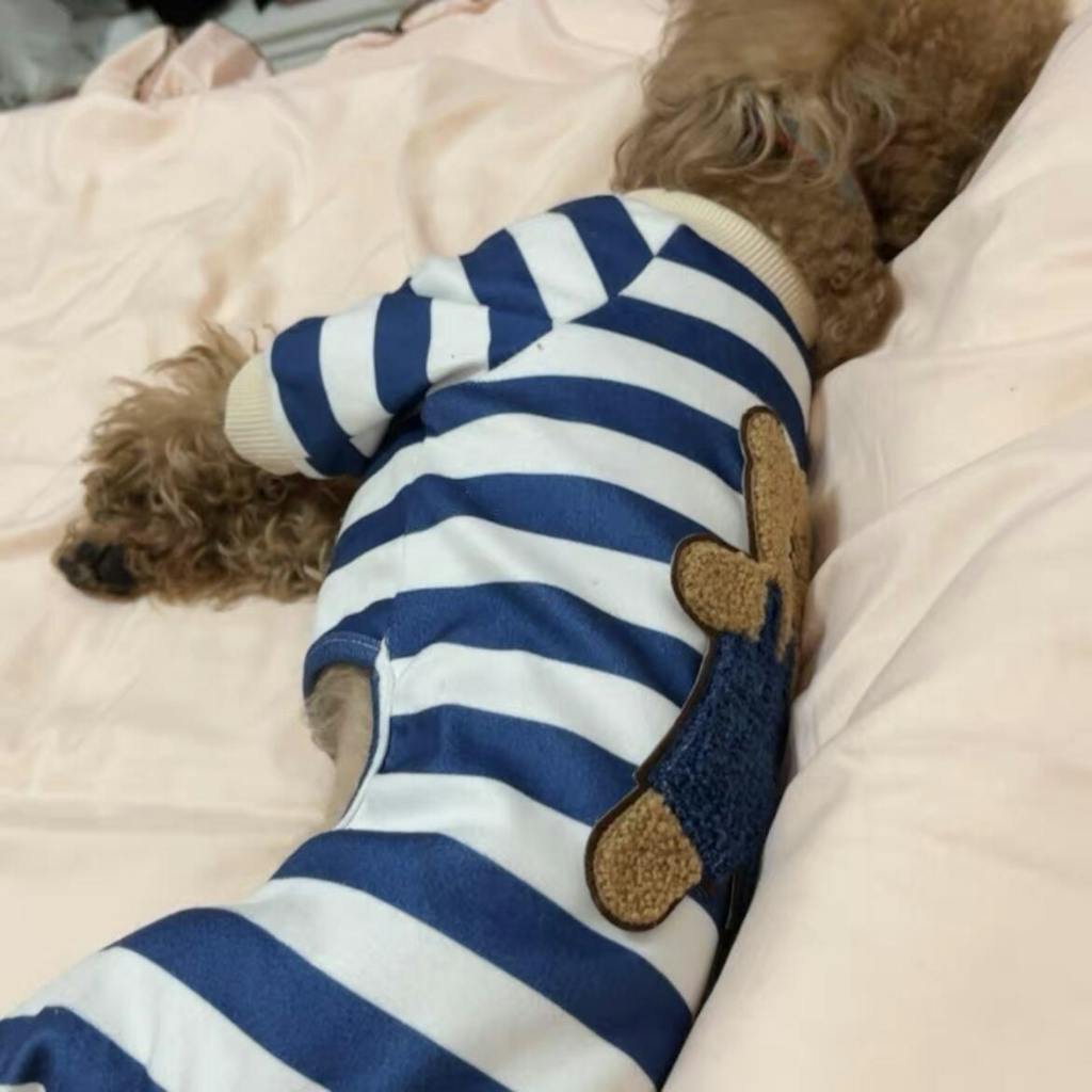 Soft Teddy Bear Blue Stripe Onesie Pajama T-Shirt for Cats and Dogs